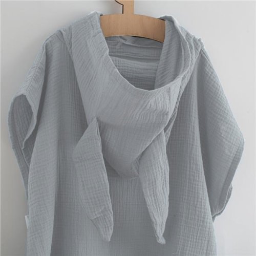 Detské mušelínové pončo New Baby Feeling. Štýlové pončo nielen na doma, ale aj na plávanie pri bazéniku, alebo pri vode. Mušelínové pončo je vďaka materiálu ľahké, vzdušné a krásne savé. Pončo bude chrániť dieťa pred chladom a poslúži aj ako jemná osuška. Vďaka voľnému jedinečnému strihu a roztomilým uškám urobí deťom veľkú radosť. Svojim strihom s dieťatkom porastie a padne na každú postavu. Vyzerá skvele a je možné využívať po celý rok. Pre ľahšie obliekanie a vyzliekanie sú na boku cvočky. Tým vznikne možnosť urobiť otvor na ruku, alebo nechať strih voľný. Zloženie: mušelín-100% bavlna. Rozmer: 80 cm bez kapucne, šírka: 59 cm.