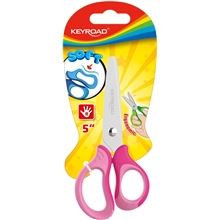 Detské nožnice KEYROAD Soft s guľatou špičkou 13 cm Mäkký ergonomický úchop pre pohodlné držanie Kvalitné oceľové nože umožňujú presné strihanie Dodávané na blistri v ružovej farbe