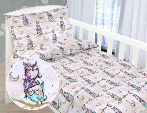 Detské obliečky bavlna Agáta - 90x135 cm, 45x60 cm - Sovička na vetve