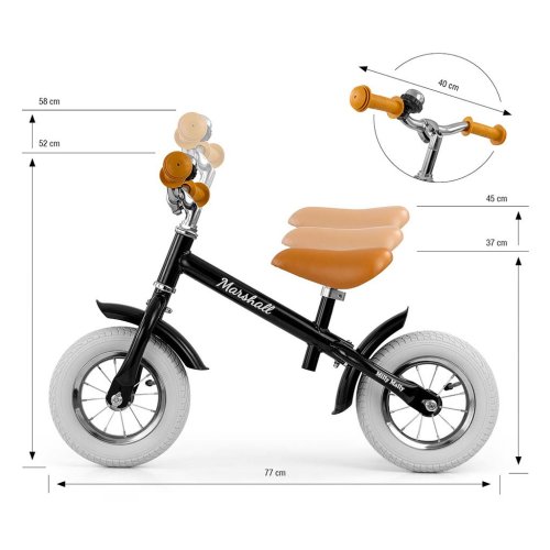 Jazda na odrážadle je ideálny pre učenie rovnováhy, takže neskoršie jazda na klasickom bicykli bude oveľa jednoduchšie. Bicykel je bez pedálov, vďaka čomu sa dieťa dokáže sústrediť hlavne na držanie rovnováhy a smer jazdy. Široká 10 palcové nafukovacie kolesá sú perfektne absorbujú rázy, čo zvyšuje pohodlie pri jazde. Vďaka ergonomicky tvarované a výškovo nastaviteľné sedlovke s mäkkou výplňou, koleso spolu s vašim dieťaťom porastie. Výškovo nastaviteľné riadítka sú uložené v guličkovom ložisku. Protišmykové gumové rukoväte zaistí dieťaťu bezpečný úchop a pohodlnú manipuláciu. Klasický a ergonomický dizajn kolesa zaručí dlhú životnosť a pohodlie počas používania. Oceľový rám odrážadlá poskytuje ešte väčšiu odolnosť a jeho konštrukcia je prispôsobená na dlhodobé užívanie.