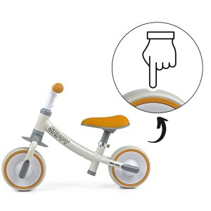 Ergonomický dizajn kolesa zaisťuje odolnosť a pohodlie. Bicykel je určený pre dlhodobé používanie malými deťmi a vďaka nízkej hmotnosti sa ľahko prenáša.