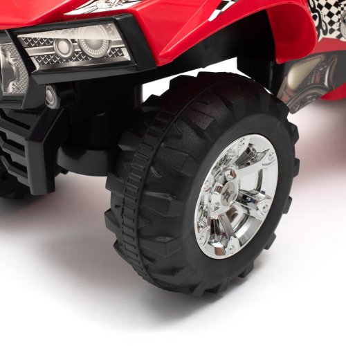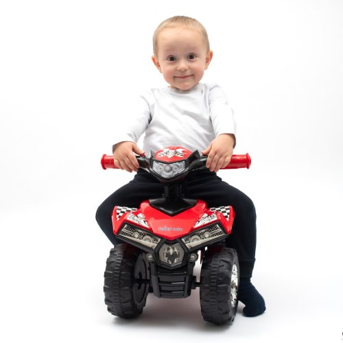 Skvelá Štvorkolka Baby Mix s tromi melódiami, klaksónom a blikajúcimi svetielkami na riadidlách. Štvorkolka má veselé farby a je vyrobená z kvalitného a pevného plastového materiálu. Odrážadlo pomáha rozvíjať motorické schopnosti dieťaťa a zaručí mu veľa zábavy a zábavy. Je určené ako pre najmenšie deti, ktoré už vedia sedieť, tak aj pre deti, ktoré sa už naučili chodiť. So štvorkolkou si Vaše dieťa užije veľa zábavy a zábavy. Naša super štvorkolka skvele vyzerá, má komfortné široké sedadlo, široké riadidlá a veľké plastové kolesá. Na riadidlách má efektnú húkačku a tlačidlo s tromi uloženými melódiami. Batérie nie sú súčasťou balenia (2x AA 1.5V). Farby samolepiek sa môžu líšiť podľa aktuálnej ponuky.