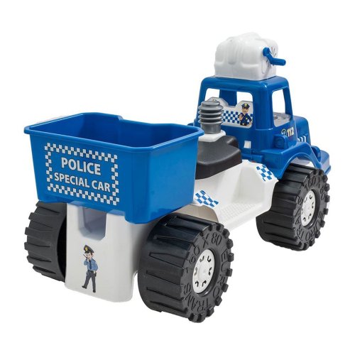Policajné odrážadlo s bublifukom Bayo dokáže vytvoriť nekonečné množstvo bublín. Na kabíne vozidla je bublifuk, z ktorého po naliatí mydlového roztoku a roztočení kľukou vylietajú bubliny.
