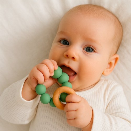 "Hryzátko s guličkami silikónové New Baby, ktoré spája prírodné materiály s bezpečným a funkčným dizajnom. Hryzátko bolo navrhnuté pre upokojenie podráždených ďasien bábätka počas prerezávania zúbkov a jeho jedinečný vzhľad poteší deti aj rodičov. Vlastnosti produktu: Prírodné materiály: Vyrobené z kombinácie dreva a mäkkého. Upokojuje pri prerezávaní zúbkov: Silikónové časti masírujú ďasná a prinášajú úľavu, zatiaľ čo drevená časť poskytuje