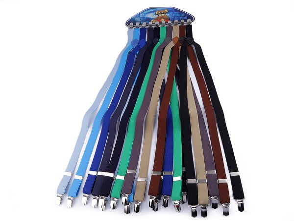 Detské traky s dĺžkou 80 cm a šírkou 2,5 cm. Ide o kvalitný tkaný český výrobok. Traky sú vyrobené zo 75% polyesteru a 25% elastodienu. Originálne balenie obsahuje 10 ks trakov v náhodnom farebnom mixe. Vhodné sú pre chlapcov aj dievčatá. Prichytávajú sa pomocou kovových žabiek obdĺžnikového tvaru. [Traky sú určené pre výšku postavy 140 - 160 cm.]