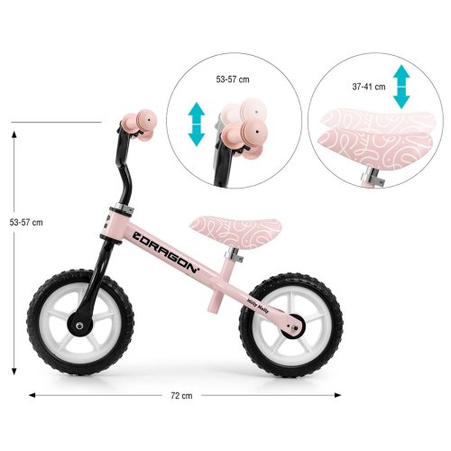 DRAGON poskytuje stabilitu, bezpečnosť a pohodlie pri jazde doma aj vonku, napríklad na záhrade. Ľahká, ale odolná konštrukcia zaručuje skvelú ovládateľnosť za všetkých podmienok. Penové kolesá zaisťujú plynulú jazdu a šetria nožičky malého cyklistu.
