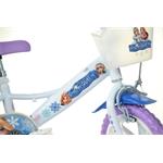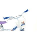 Detský bicykel Dino Bikes 124GLN SNOW QUEEN poteší takmer každé dieťa od 3 až 4 rokov . Vďaka prídavným balančným kolieskam sa nemusí báť nepríjemných pádov na zem a postupne sa na ňom naučí jazdiť. Na riadidlách nájdete bezpečnostnú koncovku , ktorá bráni skĺznutiu ruky do strany. Vášho potomka určite nadchne košíček, do ktorého si uloží svoje veci alebo napríklad plyšá ka. Bicykel má stály pohon bez voľnobehu , plastové plášte s penovou výplňou EVA a plastové lúčové kolesá o veľkosti 12 " (cca 31 cm). Pekný dizajn kolesa s potlačou Snow Queen urobí radosť vašej dcére, vnučke aj neteri.
