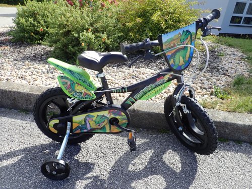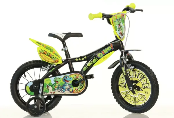 Detský bicykel Dino Bikes 14" DINOSAURUS zaujme atraktívnym dizajnom s motívom dinosaurov a robustnou konštrukciou vhodnou pre malých cyklistov. Vďaka kolesám o veľkosti 14" , prídavným balančným kolieskam a odporúčania pre deti s výškou 95 až 115 cm je ideálny pre prvý.