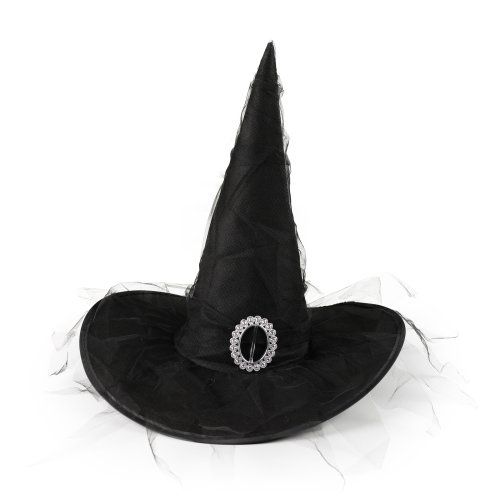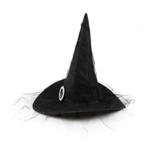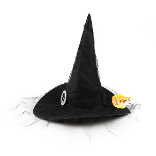 Štýlový strašidelný čarodejnícky klobúk pre deti v čiernej farbe so striebornou sponou. Staňte sa hviezdou karnevalového alebo halloweenskeho večierka vďaka tomuto neprehliadnuteľnému klobúku!