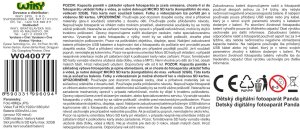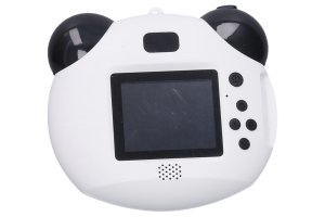 Detský digitálny fotoaparát Panda - foto 40 Mpx, video Full HD. Rozmery 10,5x4x9,5 cm. Rozlíšenie fotografií 40 megapixelov, videá Full HD (1920x1080). Časovač, vloženie času, rôzne efekty (rámčeky, vložené animácie, filtre) fotografií, hry, mp3 prehrávač, 2,0 palcový displej. Vstavaná 400mAh Li-ion batéria, USB kábel a popruh súčasťou. Prevádzka 100 min. Kompatibilný s micro SD kartami - max. 32GB. Pamäťová karta nie je súčasťou.