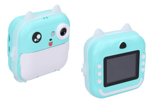 Detský digitálny fotoaparát s tlačiarňou a bluetooth aplikáciou mačka - foto 48Mpx, video Full HD. Rozmery 10,5x4,5x10,2 cm. Rozlíšenie fotografií 48 megapixelov, videá Full HD (1920x1080). Svietiace rohy silikónového rámčeka. Nastavenie kvality tlače. Časovač, sériové snímanie, 6x digitálny zoom, vloženie času, rôzne efekty (rámčeky, vložené animácie, filtre) fotografií, hry, 2,4 palcový displej. Aplikácia FUN PRINT pre iOS/Android - funkcie: tlač fotiek, súborov, štítkov, bannerov, šablón (pre úlohy, poznámky), rozpoznanie textu. Vstavaná batéria Li-ion batéria, USB-C kábel súčasťou. Šírka fotopapiera 5,5 cm, potlačiteľná šírka 4,8 cm. 2 role fotopapiera a popruh súčasťou. Kompatibilný s micro SD kartami - max. 32 GB. Pamäťová karta nie je súčasťou.