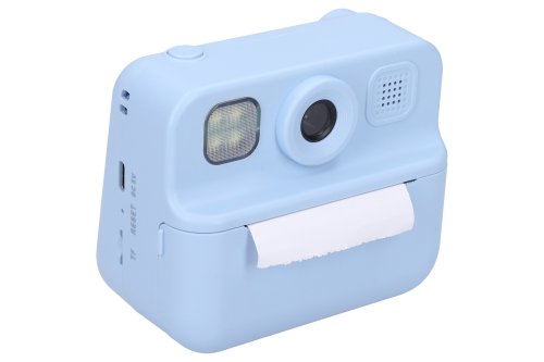 Detský digitálny fotoaparát s tlačiarňou - foto 12Mpx, video Full HD. Rozmery 9,9 x5, 8x8, 3 cm. Rozlíšenie fotografií 12 megapixelov, videá Full HD (1920x1080). Nastavenie kvality tlače. Blesk, selfie kamera, časovač, sériové snímanie, digitálny zoom, vloženie času, rôzne efekty (rámčeky, vložené animácie, filtre) fotografií, hry, mp3 prehrávač, 2,0 palcový displej. Jedno tlačidlo pre fotenie a natáčanie. Vstavaná 1200mAh batéria, prevádzka 180 min, nabíjanie 3-4 h, USB-C kábel súčasťou. Šírka fotopapiera 5,5 cm.