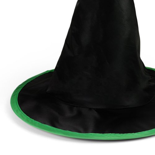 Čarodejnícky klobúk nesmie chýbať v tvojej karnevalovej zbierke! Klobúk je vyrobený z čiernej šuštiakoviny a je dekorovaný zeleným lemom.