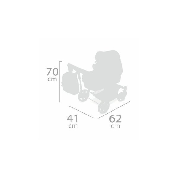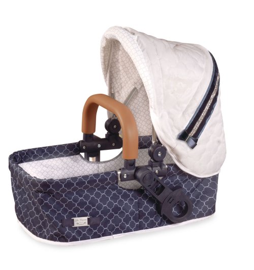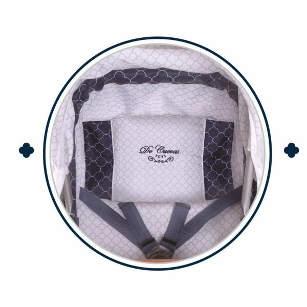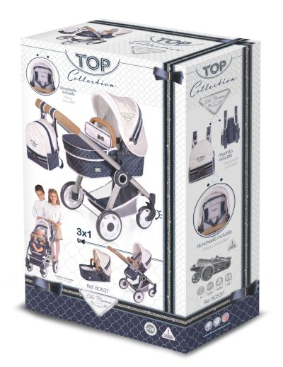 Hračka vyzerá skoro ako reálny kočík pre bábätká. Štýlové farby a kvalitné materiály dopĺňajú jeho luxusné prevedenie. Zaujímavým prvkom sú madlá v imitácii dreva alebo kože a kryt na korbičku s prešívaním a suchými zipsami . Vaše dieťa sa s kočíkom môže hrať doma, na záhrade alebo si ho vezme so sebou na prechádzku. Do úložného priestoru v spodnej časti si uložia veci.