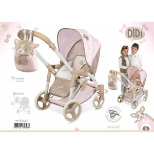 Skladací kočík pre bábiky 3v1 DeCuevas DIDI 2021 v jemnom dizajne poteší každú malú slečnu. Vďaka výškovo nastaviteľnej rukoväti a funkčným doplnkom je ideálny pre predškolské deti od 3 rokov. Kočík vás zaujme krásnym prevedením s vyšívaným motívom roztomilého šteniatka čivavy.