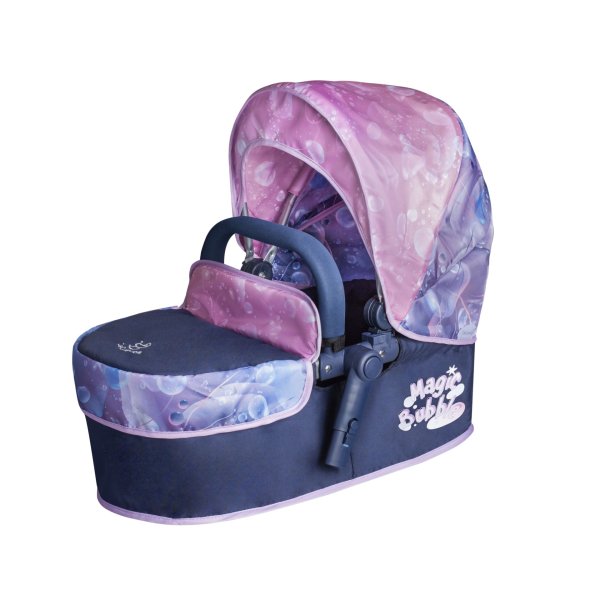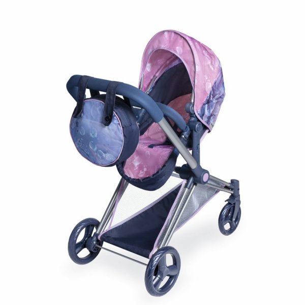 DeCuevas 81776 Skladací kočík pre bábiky 3 v 1 s taškou Magic Bubble 2024 - 73 cm patrí do rovnomennej kolekcie, ktorá je novinkou roku 2024 a ponúka niekoľko rôznych druhov kočíkov. Farebná kolekcia Magic Bubble pracuje s nežným dúhovým efektom. Od ružovej plynule prechádza vo svetle fialovomodrú, aby v závere končila kráľovskou modrou. Hravé bublinky sprevádzajú celú kolekciu. Okrúhla závesná taška na kočík, ako tvarom, tak dizajnom, podporuje názov celej kolekcie Magic Bubble. Aplikácia tematického Magic Bubble loga výrazne vyniká a zdobí na tmavomodrom pozadí materiálu. Táto kolekcia sa zrodila v spolupráci českých návrhárov a španielskeho výrobcu DeCuevas Toys.