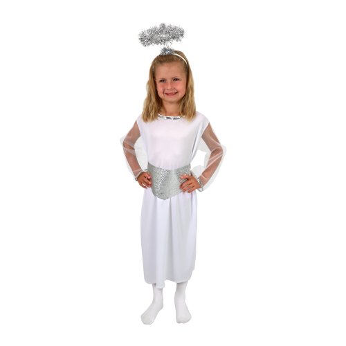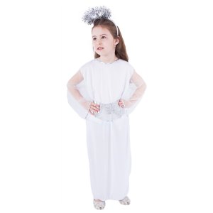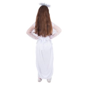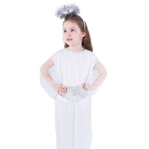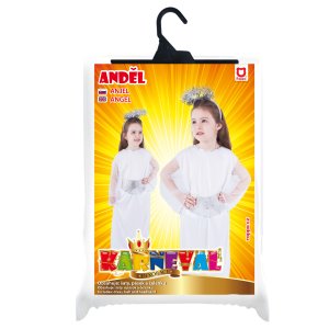 Pôvabný karnevalový kostým s motívom anjela v strieborno-bielej farbe a veľkosti S je určený pre dievčatká vo vekovom rozmedzí 4-6 rokov (105-116 cm) Balenie obsahuje svätožiaru, opasok a šaty.