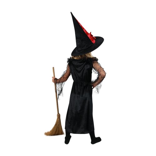 Roztomilý karnevalový kostým čierno-červenej farby urobí radosť každému dievčatku! Súprava obsahuje šaty s pavučinkovými rukávmi a klobúk s mašľou. Set vo veľkosti S je určený pre dievčatká vo vekovom rozmedzí 4-6 rokov (105-116 cm). Vhodný aj na oslavu Halloweenu! Metla ani palička nie sú súčasťou balenia.