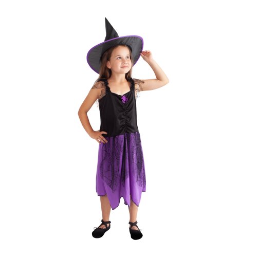 Roztomilý karnevalový kostým čierno-fialovej farby urobí radosť každému dievčatku! Súprava obsahuje šaty dekorované pavučinkou a perfektne zladený klobúk. Set vo veľkosti M je určený pre dievčatká vo vekovom rozmedzí 6-8 rokov. Vhodný aj na oslavu Halloweenu! Nielen tento rok je potrebné myslieť EKO-nomicky aj EKO-logicky! EKO-balenie je vhodné najmä pre e-shopy kde zákazník nakupuje podľa fotografie a nie je potrebné veľké balenie s vešiakom. EKO-logicky – na balenie bolo použitých menej plastu a ďalších materiálov. Jedná sa o malý transparentný obal s fotografiou. EKO-nomicky – EKO-obal zaberie len polovicu miesta – šetrite skladové miesta s nami!