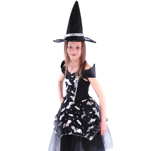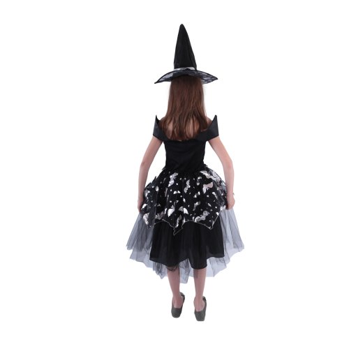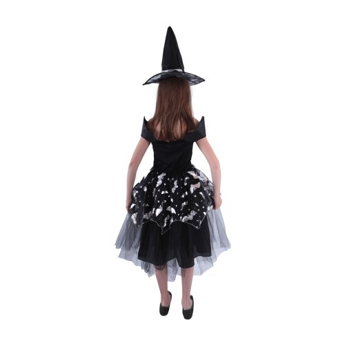 Parádny čarodejnícky kostým s netopierími motívmi! Kostýmček o veľkosti M je určený pre dievčatká vo vekovom rozmedzí 6-8 rokov (117-128 cm). Čierne šaty s nadýchanou sukňou sú zdobené striebornými prvkami a strieborným lemovaním. Súčasťou balenia je aj perfektne zladený klobúk, ktorý je tiež zdobený striebornou stuhou. Staň sa hviezdou karnevalového večierka vďaka tomuto kostýmu! Vhodný aj na oslavu Halloweenu. Nielen tento rok je potrebné myslieť EKO-nomicky aj EKO-logicky! EKO-balenie je vhodné najmä pre e-shopy kde zákazník nakupuje podľa fotografie a nie je potrebné veľké balenie s vešiakom. EKO-logicky – na balenie bolo použitých menej plastu a ďalších materiálov. Jedná sa o malý transparentný obal s fotografiou. EKO-nomicky – EKO-obal zaberie len polovicu miesta – šetrite skladové miesta s nami!