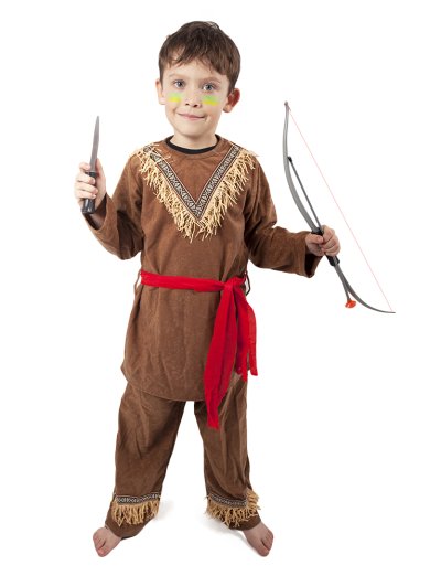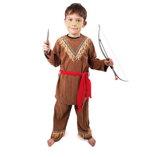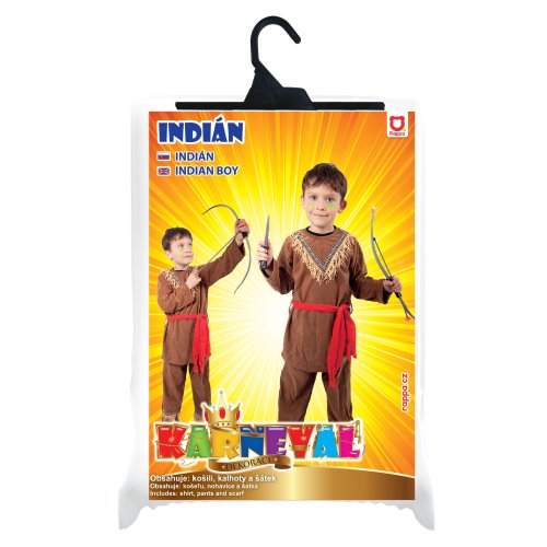 Štýlový karnevalový kostým s motívom indiána! Kostým hnedej farby vo veľkosti S je určený pre chlapčekov vo vekovom rozmedzí 4-6 rokov. Balenie obsahuje horný diel s indiánskym vzorom, nohavice a červenú šatku. Oba diely sú zdobené strapcami. Staň sa najväčším frajerom karnevalového večierka vďaka tomuto kostýmu a ohrom tak všetkých svojich kamarátov!