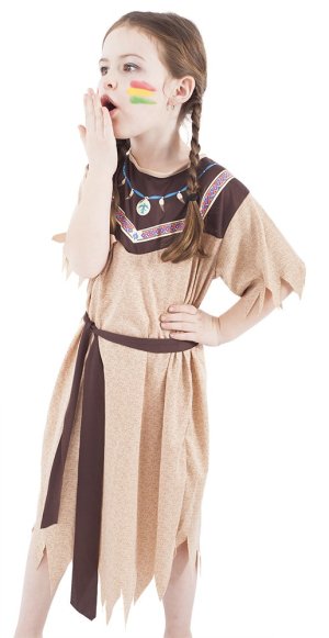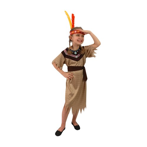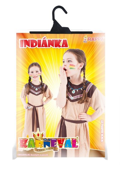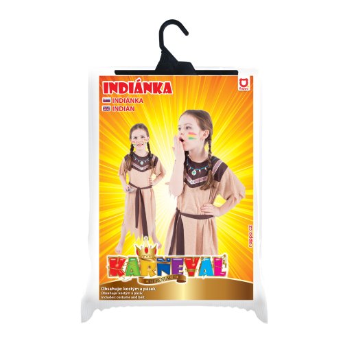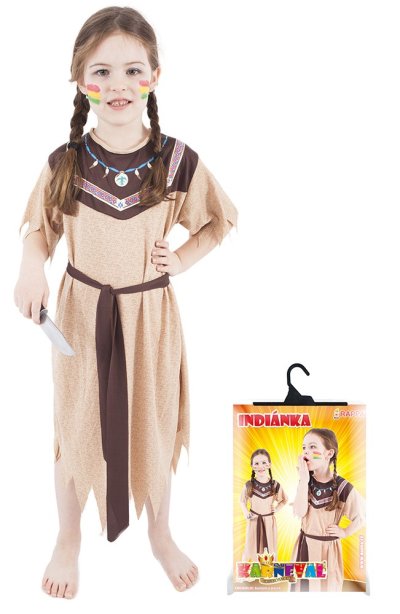 Štýlový karnevalový kostým v motíve indiánskej slečny! Kostým hnedej farby vo veľkosti M je určený pre dievčatá vo vekovom rozmedzí 6-8 rokov (117-128cm). Staň sa najväčšou hviezdou karnevalu! Sekera ani čelenka nie sú súčasťou balenia.
