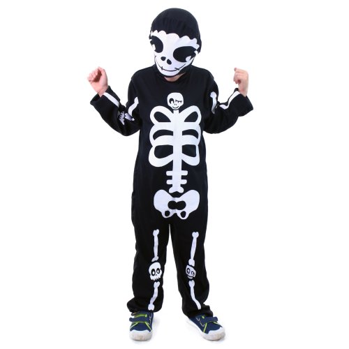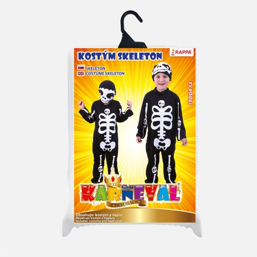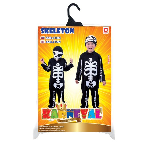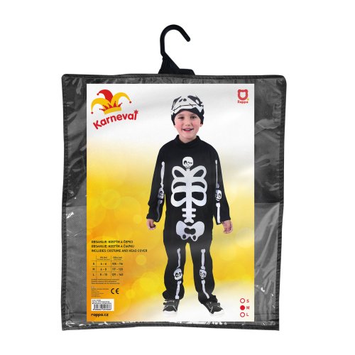 Strašidelný karnevalový kostým s motívom kostlivca! Kostým vo veľkosti M je určený pre deti vo vekovom rozmedzí 6-8 rokov (117-128 cm). Balenie obsahuje čiernu kombinézu a masku s bielou potlačou kostry.