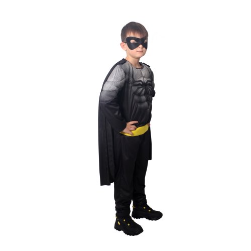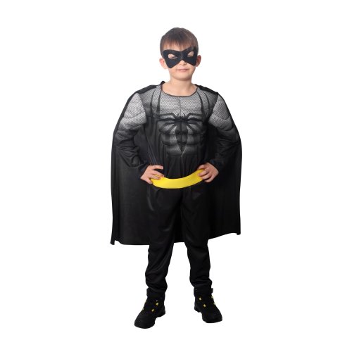 Úchvatný kostým v štýle pavúčieho bojovníka nesmie v tvojej karnevalovej zbierke chýbať! Kostým vo veľkosti S je určený pre chlapčekov vo vekovom rozmedzí 4-6 rokov (105-116 cm). Balenie obsahuje čierno-sivý overal so znakom pavúka na hrudi a je doplnený čiernym odnímateľným plášťom a látkovou škraboškou.