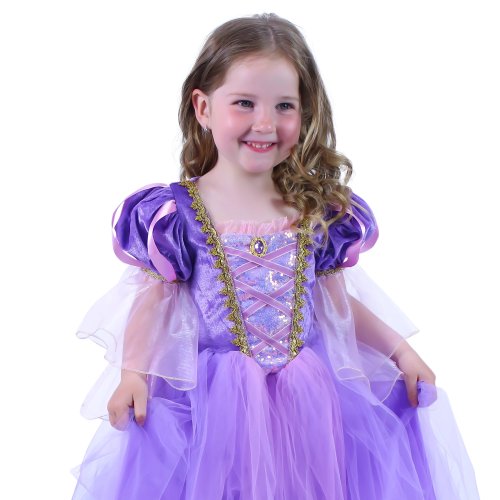 Úchvatný dievčenský kostým pre princezné! Kostým princeznej vo veľkosti S je určený pre dievčatká vo vekovom rozmedzí 4-6 rokov (105-116 cm). Kostým je ušitý v ružovo-fialkovej farbe a zdobený zlatým lemovaním.