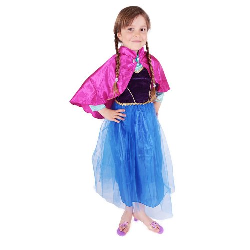 Prekrásny dievčenský kostým pre malé zimné princezné! Kostým princeznej Aničky vo veľkosti M je určený pre dievčatká vo vekovom rozmedzí 6-8 rokov (117-128 cm). Kostým je ušitý v čierno-modrých farbách, je zdobený zlatým lemovaním a súčasťou je ružový saténový plášť s modrým kryštálom. Tento štýlový kúsok ti nesmie v šatníku chýbať! Nielen tento rok je potrebné myslieť EKO-nomicky aj EKO-logicky! EKO-balenie je vhodné najmä pre e-shopy kde zákazník nakupuje podľa fotografie a nie je potrebné veľké balenie s vešiakom. EKO-logicky – na balenie bolo použitých menej plastu a ďalších materiálov. Jedná sa o malý transparentný obal s fotografiou. EKO-nomicky – EKO-obal zaberie len polovicu miesta – šetrite skladové miesta s nami!