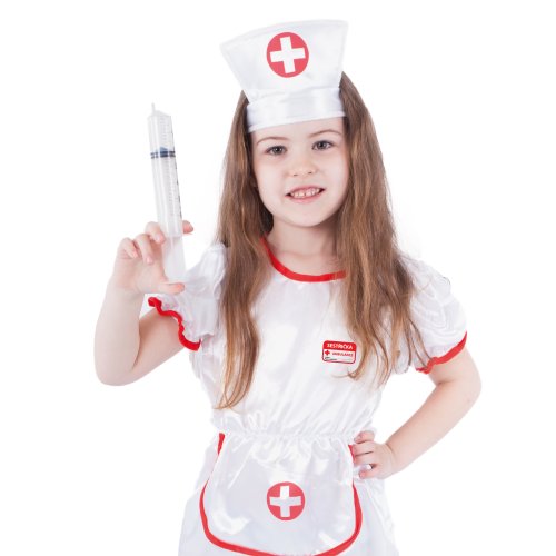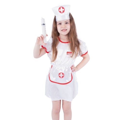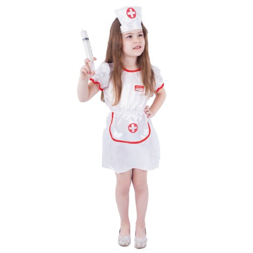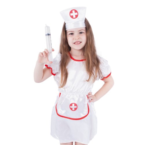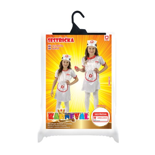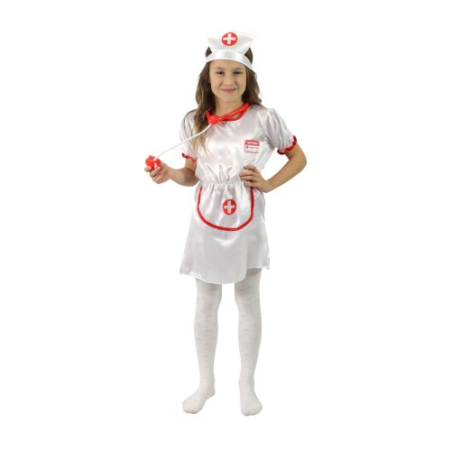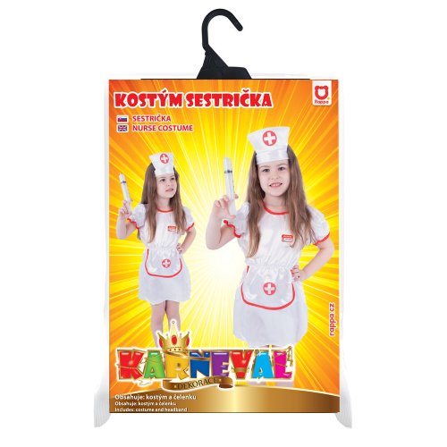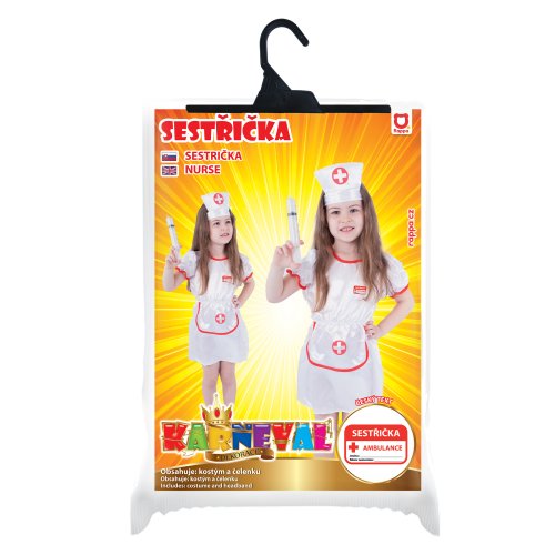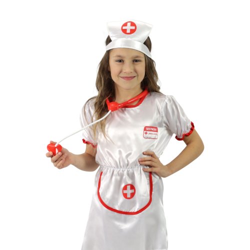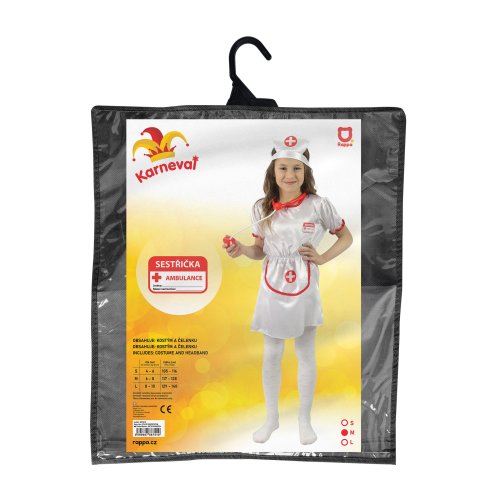 Krásny karnevalový kostým pre malé zdravotné sestričky. Kostým veľkosti M je určený pre dievčatá vo vekovom rozmedzí 6-8 rokov (117-128 cm). Súprava obsahuje šaty a čiapku. Stetoskop nie je súčasťou balenia.