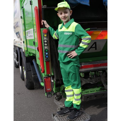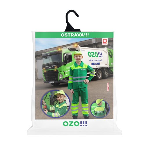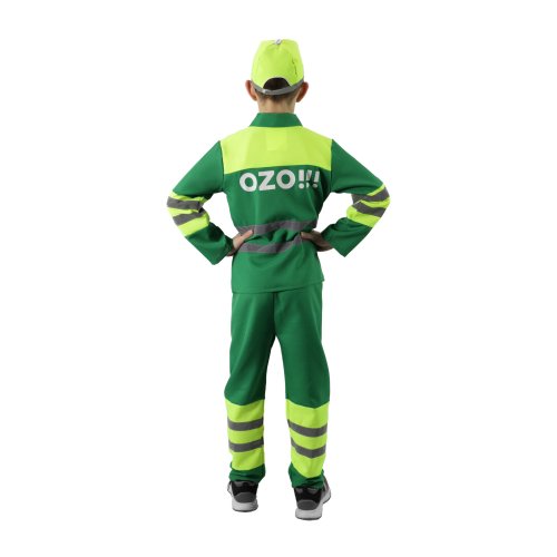 Byť smetiarom bol v detstve sen skoro každého malého chlapca! S týmto exkluzívnym detským kostýmom sa v neho premeníte behom chvíľky! Sada obsahuje blúzu s nápisom OZO!!!, nohavice a čiapku, všetko s reflexnými pruhmi. Kostým veľkosti M je určený pre chlapčekov vo vekovom rozmedzí 6-8 rokov (117-128 cm).