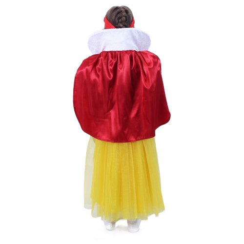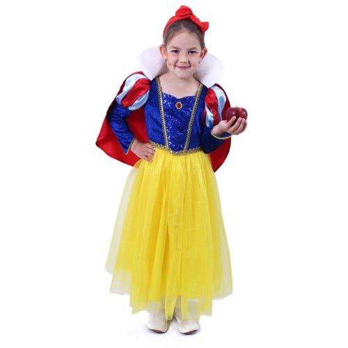 Premeň sa počas chvíľky na pôvabnú Snehulienku! Kostýmček s veľkosťou S je určený pre dievčatká vo vekovom rozmedzí 4-6 rokov (105-116 cm). golierom. Neobsahuje mašľu do vlasov.