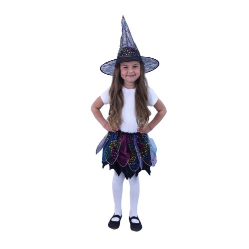 Magická sukienka pre malé čarodejnice! Kostým čiernej farby zdobený farebným dekorom je určený pre dievčatká vo vekovom rozmedzí 3-7 rokov. Balenie obsahuje nadýchanú sukničku ak tomu perfektne zladený klobúk. Sukňa je v páse na gumičku a jej dĺžka je 35 cm. Vhodný aj na oslavu Halloweenu.