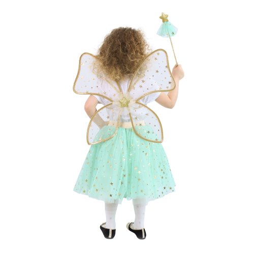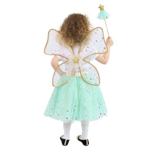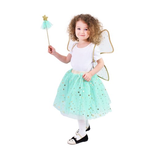 Krásna vília sada pre malé dievčatká! Sada obsahuje zelenú tylovú TUTU sukienku s potlačou zlatých hviezdičiek a zlatou gumou v páse, k tomu perfektne zladené krídla a prútik v rovnakom motíve. Sukňa je dlhá cca 35 cm a je vhodná na obvod pása 50-60 cm. Určené pre dievčatká vo vekovom rozmedzí 3-10 rokov (104-146 cm). Nielen tento rok je potrebné myslieť EKO-nomicky aj EKO-logicky! EKO-balenie je vhodné najmä pre e-shopy kde zákazník nakupuje podľa fotografie a nie je potrebné veľké balenie s vešiakom. EKO-logicky – na balenie bolo použitých menej plastu a ďalších materiálov. Jedná sa o malý transparentný obal s fotografiou. EKO-nomicky – EKO-obal zaberie len polovicu miesta – šetrite skladové miesta s nami!