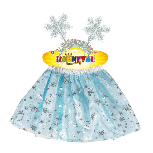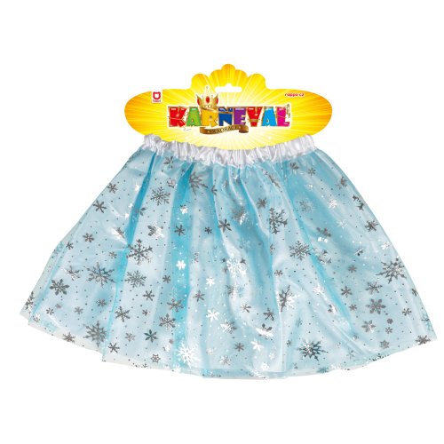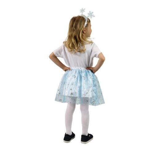 Modrá sukňa TUTU v páse na gumičku! Sukienka je určená pre dievčatká vo vekovom rozmedzí 3-7 rokov. Nadýchaná suknička je zdobená trblietavými snehovými vločkami a saténovým lemovaním v páse. Dĺžka sukienky je cca 30 cm. Čelenka so snehovými vločkami nie je súčasťou.