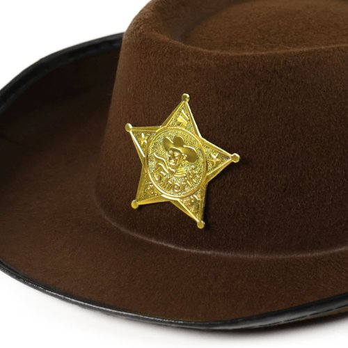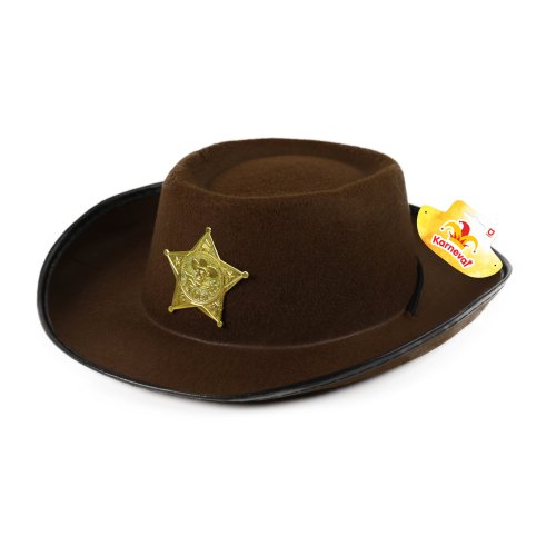 Štýlový kovbojský klobúk pre deti! Tento hnedý klobúk je zdobený šerifskou hviezdou. Nasaď si klobúk a ako šerif budeš mať vo svojom meste určite rešpekt!