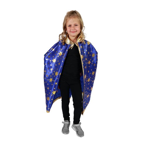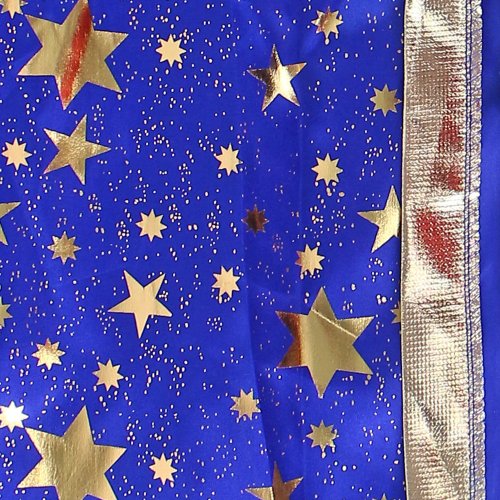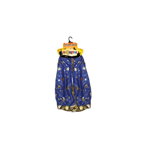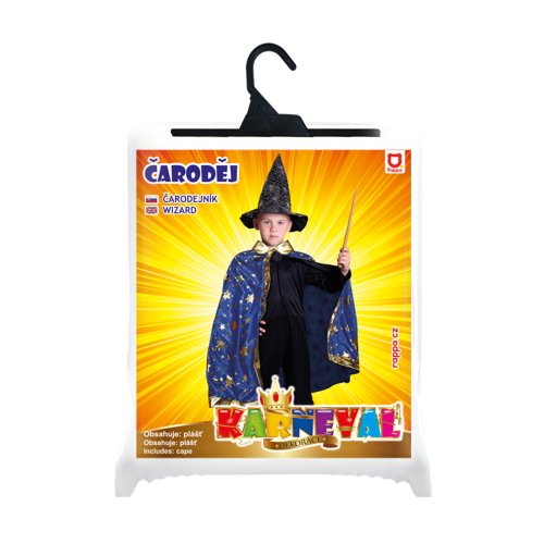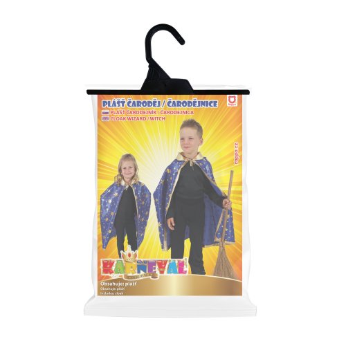 Kúzelný čarodejnícky plášť! Tento magický kúsok je určený pre všetky dievčatá a chlapcov vo vekovom rozmedzí 3-7 rokov. Plášť na zaväzovanie je dekorovaný zlatými hviezdičkami a lemovaním. Dĺžka plášťa cca 75 cm. Ideálne aj na oslavu Halloweenu. Metla nie je súčasťou.