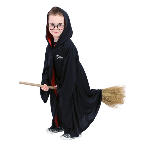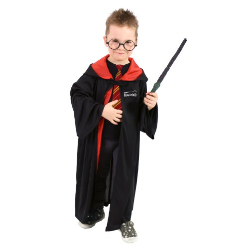 Detský kúzelnícky plášť s kapucňou je určený pre všetky dievčatá a chlapcov vo vekovom rozmedzí 3-7 rokov (104-136 cm). Plášť čierno-červenej farby so zapínaním pri krku je na ľavej strane zdobený nápisom Kúzelník. Súčasťou kostýmu sú okuliare a kravata. Dĺžka plášťa cca 75 cm.