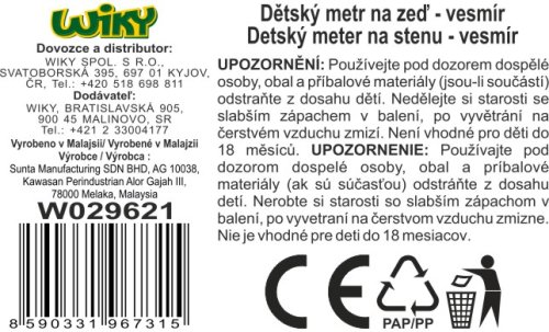 Detský meter na stenu penový vesmír. Dĺžka 120 cm, šírka 30 cm. Vyznačená výška 50 cm - 160 cm.