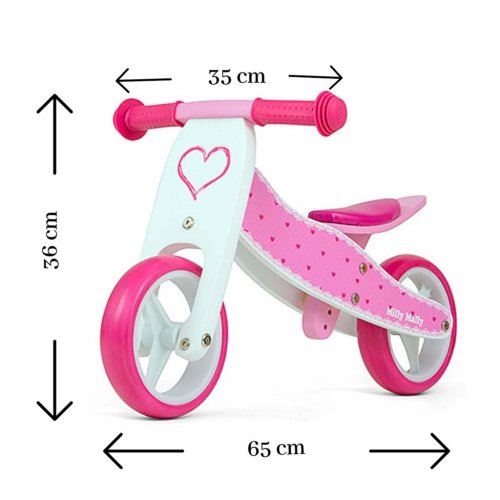 Detské multifunkčné drevené odrážadlo Milly Mally JAKE je ideálne pre deti, ktoré sa práve začínajú učia jazdiť na bicykli a pritom nie sú schopné udržať rovnováhu na dvoch kolesách. Výhodou odrážadla JAKE je, že z trojkolky sa ľahko stane odrážadlo na dvoch kolesách. <BR>Charakteristika:<BR>- dve funkcie (trojkolka, odrážadlo-2 kolesá)<BR>- pevná drevená konštrukcia<BR>- 7" penové kolieska <BR>- stabilná a ľahká konštrukcia<BR>- protišmykové rukoväte z plastového materiálu<BR>- pohodlné, mäkké nastaviteľné sedadlo<BR>- regulácia sedadla: 3 úrovne<BR>- klzné ložiská<BR>- moderný dizajn<BR>- maximálne zaťaženie 25 kg<BR>- vekové rozmedzie 18-36 mesiacov<BR> BR> je v súlade s európskymi bezpečnostnými normami<BR>Rozmery:<BR>- šírka odrážadla - 3 kolesá: cca 42 cm<BR>- šírka odrážadla - 2 kolesá: cca 35 cm<BR>- šírka riadidiel: cca 34 cm <BR>- výška riadidiel: cca 36 cm<BR>- výška sedadla od 23-27 cm - trojkolka<BR>- výška sedadla od 26-30 cm - odrážado - 2 kolesá<BR>- priemer koliesok cca 18 cm<BR> >- celková dĺžka cca 65 cm <BR>- výška cca 36 cm<BR>Váha<BR>- trojkolka cca: 2,13 kg<BR>- odrážadlo - 2 kolesá - cca 1,76 kg