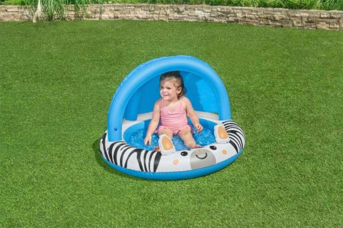 Detský nafukovací bazén so strieškou Bestway. Krásne farebný bazénik s africkými motívmi určite poteší Vaše detičky počas letných dní. Doprajte svojim deťom rozprávkové leňošenie na vode. Súčasťou bazéna je nafukovacia strieška, ktorá chráni deti pred lúčmi slniečka. Vhodný pre deti od 2 rokov. Rozmer: cca 97x66 cm. Obsah: 26l. Zloženie vinyl.