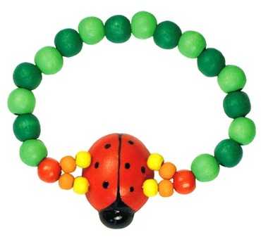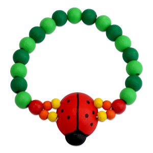 Detská bižutéria z drevených perál navlečených na gumičke. Dĺžka náramku je cca 70 mm. Nevhodné pre deti do 3 rokov. Obsahuje malé časti. Výrobok je zdravotne nezávadný.