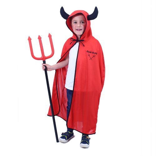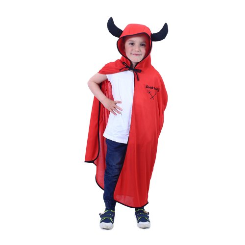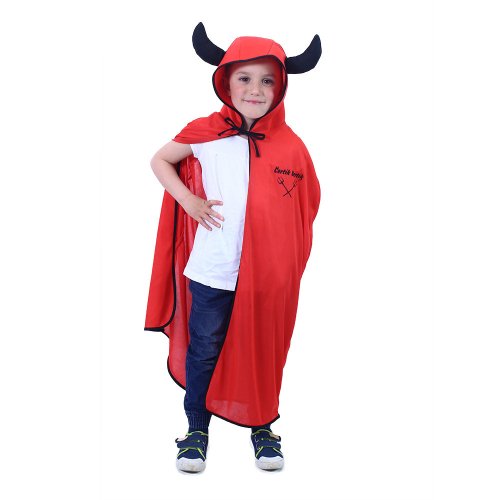Karnevalový plášť čerta v červeno-čiernej farbe av univerzálnej veľkosti je určený pre deti vo vekovom rozmedzí 3-10 rokov (104-146 cm). Balenie obsahuje plášť s kapucňou, na ktoré sú prišité rohy. Dĺžka plášťa je cca 104 cm.