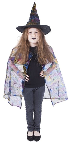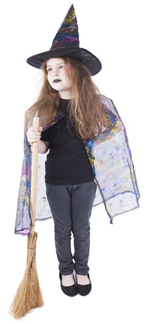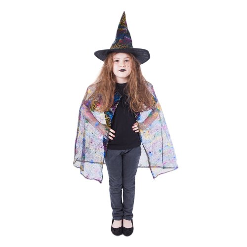 Krásna sada na čarodejnice alebo halloweensky večierok! Komplet obsahuje plášť a perfektne zladený klobúk. Všetko je dekorované metalickými magickými motívmi rôznych farieb. Odporúčané pre deti vo vekovom rozmedzí 3-7 rokov.