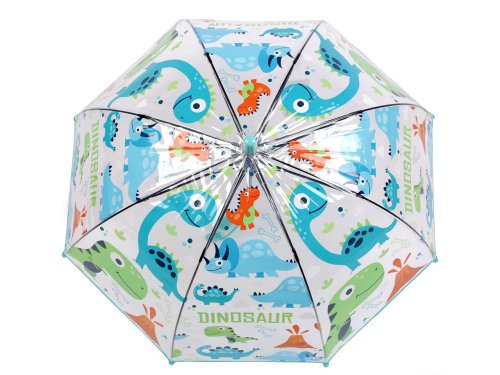 Detský vystreľovací dáždnik s potlačou dinosaurov deti nadchne, pretože vďaka priehľadnému poťahu uvidí von. Navyše je dosť hlboký, budú mať pocit, že sú celí schovaní. Na rukoväti má visačku, na ktorú môžete napísať meno dieťaťa. Dáždnik je vystreľovací, má klasickú tyč zakončenú pevnou rukoväťou. Konštrukcia dáždnika je z pružných lamiel a tvorí osem polí. Konce lamiel sú zakončené plastovými guličkami - zmenšujú riziko poranenia. Dáždnik má klasické zapínanie na patentku. Hĺbka dáždnika je 30 cm.