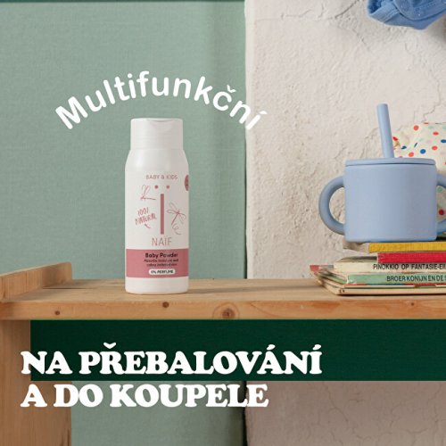 Detský púder predstavuje šetrnú starostlivosť o citlivú pokožku detí a bábätiek. Pohlcuje vlhkosť a pomáha udržať pokožku suchú. To môže byť predovšetkým v teplejšom počasí pre bábätko veľmi príjemné. Predchádza vzniku zaparenín, začervenanie a podráždenie pokožky bez toho, aby upchával póry. Je ideálnou voľbou pre citlivú oblasť okolo plienok a kožné záhyby. Neobsahuje mastenec, alkohol ani parfumáciu, len čistý ryžový škrob, ktorý je známy svojimi jemnými a upokojujúcimi vlastnosťami. To najlepšie z prírody pre každodenné pohodlie vášho bábätka. Rovnako ako ostatné produkty NAÏF neobsahuje žiadne nezmyselné a potenciálne škodlivé látky ako sú minerálne oleje, mikroplasty, silikóny alebo SLS/SLES.