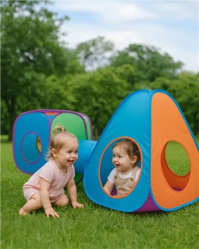 Krásny detský stan Baby Mix 3v1 je trojdielnou sadou, skladajúci sa z dvoch samostatných stanov prepojených plaziacim tunelom. Tunel sa do stanov len zasunie, nie je na pevno pripevnený, je možné s ním ľubovoľne manipulovať. Otvory zaisťujú dobrú cirkuláciu vzduchu. Je vyrobený z kvalitnej a pevnej látky. Určené pre deti od 3 rokov.<BR>Charakteristika:<BR>- super zábava doma aj vonku<BR>- stany prepojené tunelom pre ešte väčšie zážitky z hier<BR>- vyrobené z kvalitnej a pevnej látky<BR>- možno rýchlo zložiť i rozložiť<BR>- určené pre deti od 3 rokov<BR>Rozmery:<BR>- celková dĺžka sady 265 cm<BR>- šírka 95 cm<BR>- výška 94 cm<BR>- dĺžka tunela 119 cm<BR> >- priemer tunela 45 cm<BR>- váha 1,68 kg>