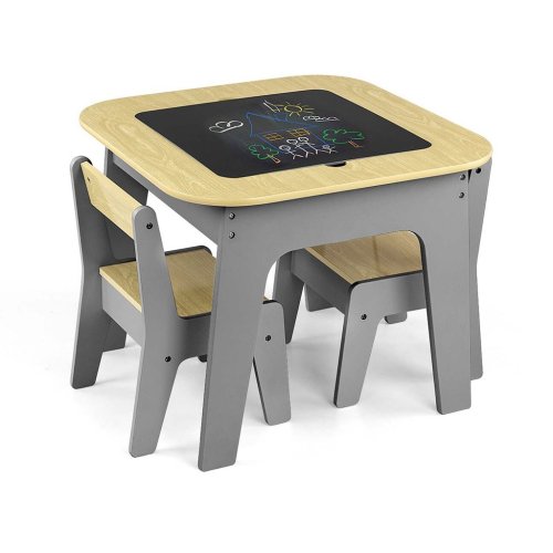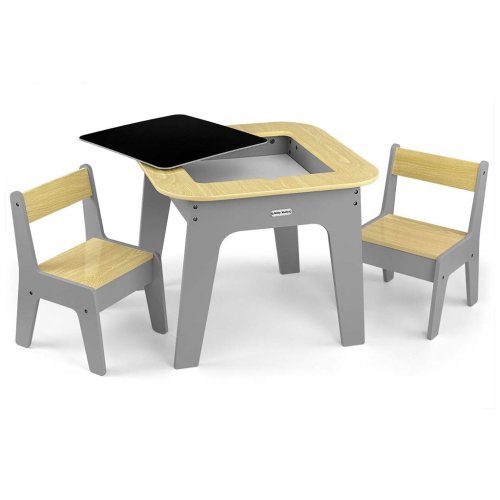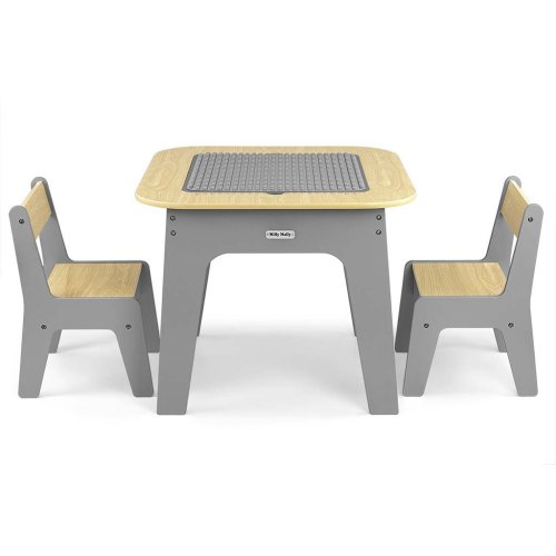 Detská sada nábytku Olaf Blocks - stôl a dve stoličky je multifunkčný komplet navrhnutý tak, aby zaistil deťom pohodlie a priestor na kreatívne hranie a učenie. Stôl s dvoma stoličkami má decentné farebné prevedenie, ktoré mu dodáva moderný a estetický vzhľad, hodiaci sa do každého interiéru.