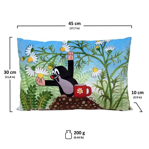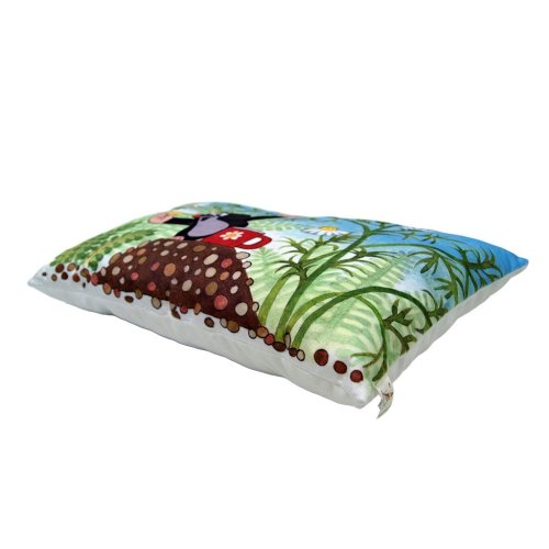 Mäkučký vankúšik s motívom obľúbeného Krtka, vhodný do postieľky, na cesty aj ako dekorácia do izbičky. Materiál mikrovelúr, obrázok tlač, náplň duté vlákno.